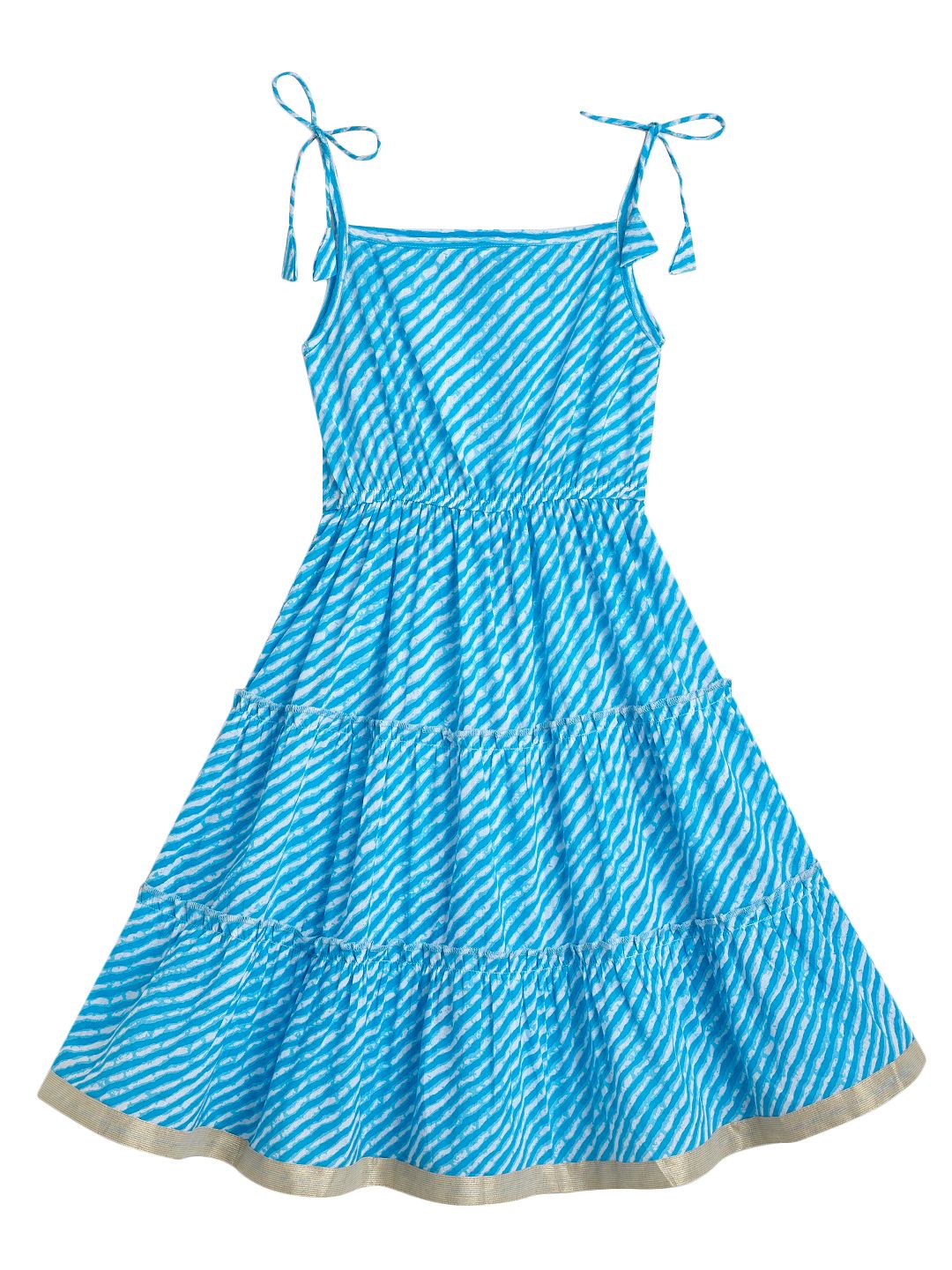 Girls Leheriya Indo-western Fusion Dress - Blue